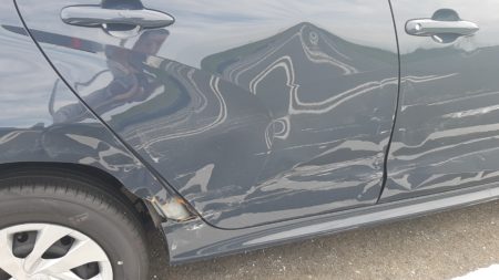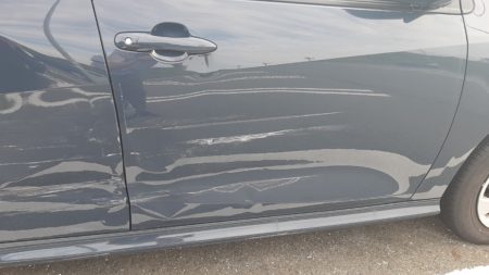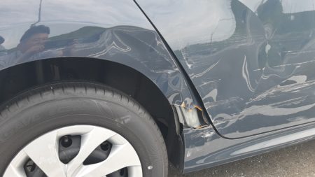 ▼フロントからリアにかけてキズ、へこみが出来ています。