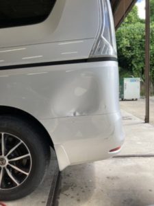 花巻市内にお住いのお客様ですいつも車検や修理でご利用いただいているお客様です。駐車場でほかの車にぶつけられたということでご入庫いただきました。