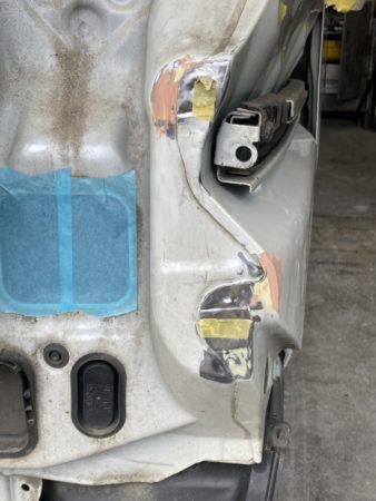 ▼溶接機を使用してへこみを引き出し、パテで補修していきます。