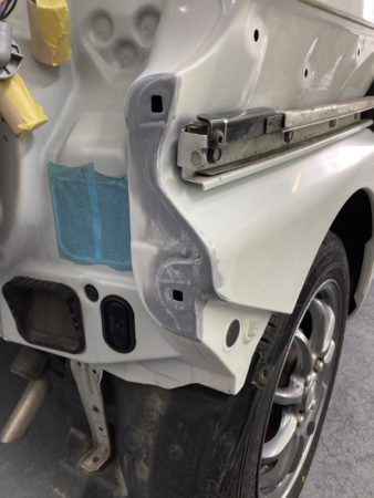 パテを塗って乾燥したらペーパーで研磨して形を整えます。
